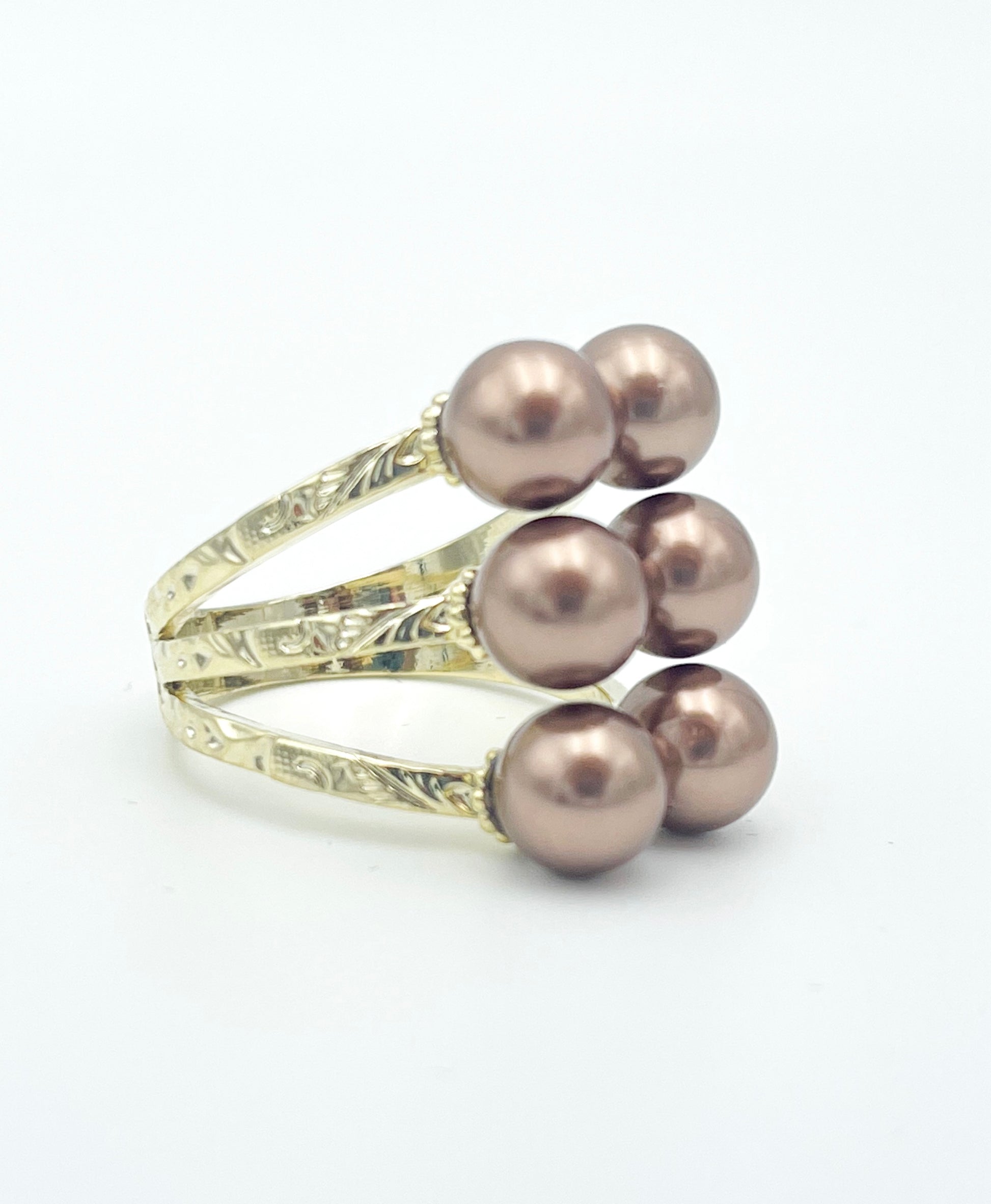 Beautiful Statement Ring decorated with 6 brown shell pearls