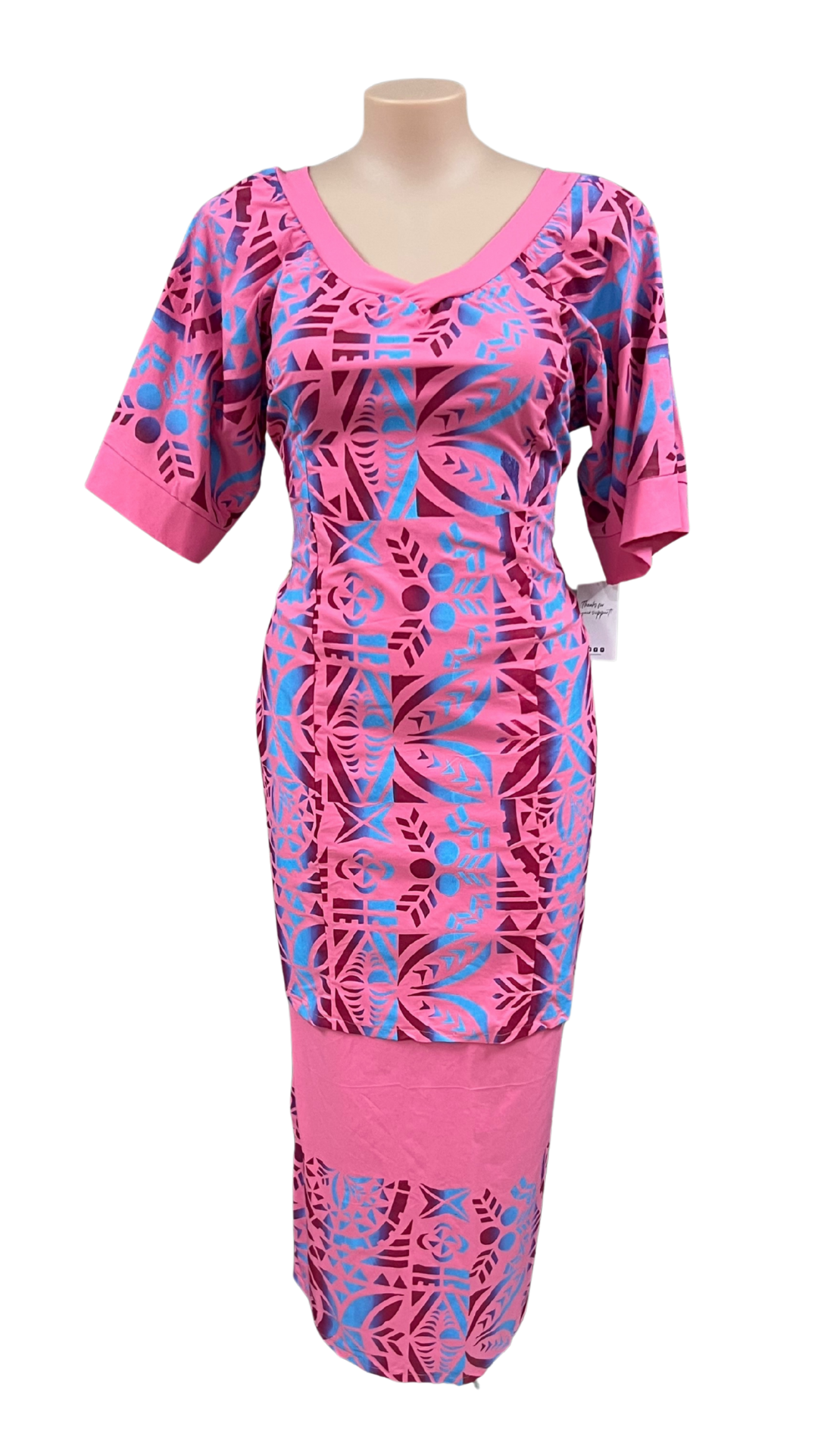 Beautiful Pink Puletasi with Blue & Pink Prints